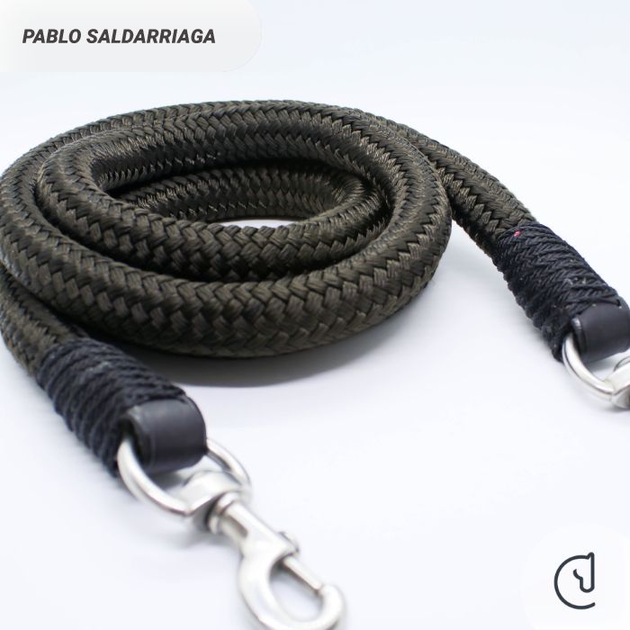 Rienda de lujo en nudo en espiral y mosquetón en acero inoxidable, suave ergonómica de alta calidad. Un producto artesanal hecho en Colombia